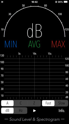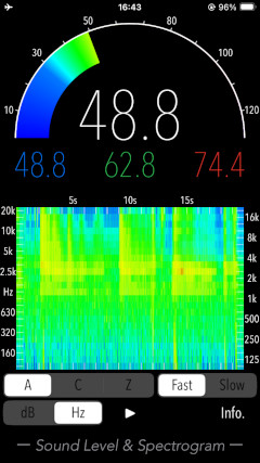 "Sound Level & Spectrogram" is a sound level meter app for iPhone to easily measure the sound level of noise and music in your living environment. This app is Free of Charge.